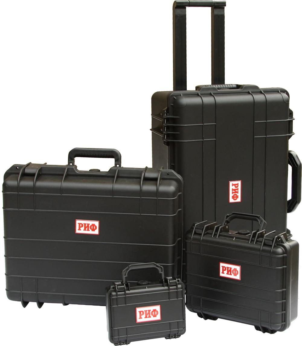 Защитные кейсы РИФ выпускаются в разных размерах – от самого маленького мини-кейса, в котором удобно устроить, например, аптечку, до макси-кейса в виде чемодана на колесах с выдвижной ручкой или плоских кейсов-кофров под оружие. Это весьма расширяет сферу применения кейсов и делает комфортным как транспортировку тяжелых хрупких грузов, так и перевозку мелкой и деликатной клади.