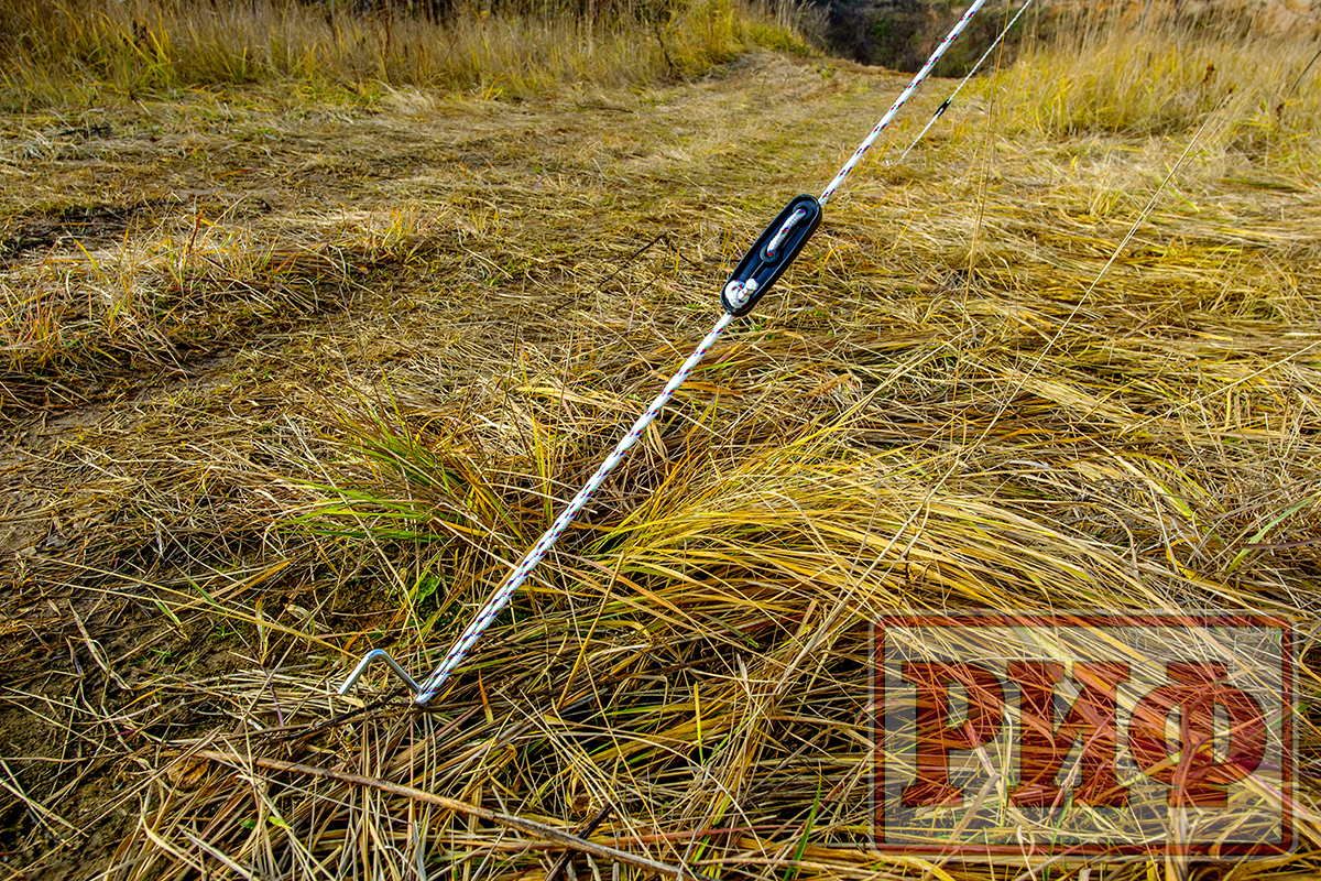 Установка тента под силу даже одному человеку и занимает не более двух-трех минут. В комплект входят веревочные растяжки с возможностью регулировки натяжения и металлические колья для крепления к грунту.