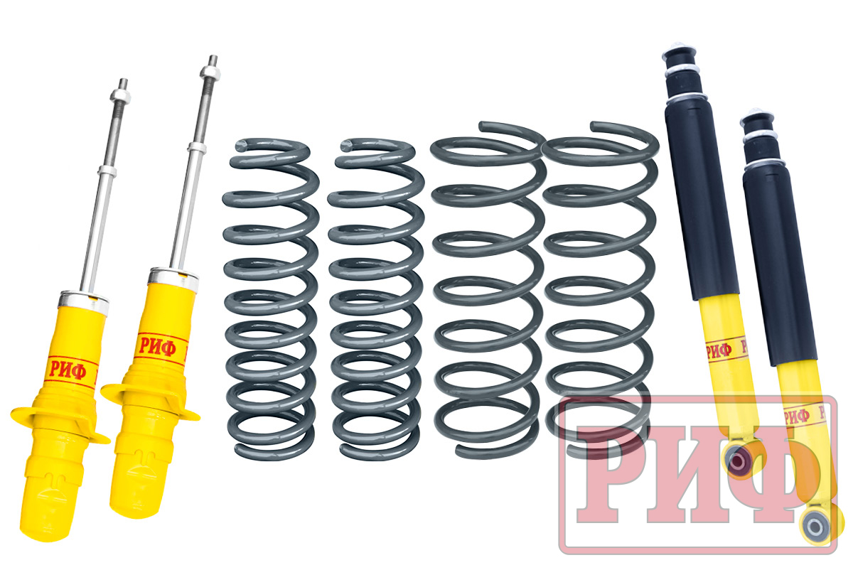 Комплект РИФ усиленной стандартной подвески на SsangYong Kyron +75 кг: описание, фото, видео, характеристики, условия доставки и покупки оптом и в розницу, отзывы покупателей. Большой каталог Усиленная подвеска на официальном сайте интернет-магазина для внедорожников Автовентури
