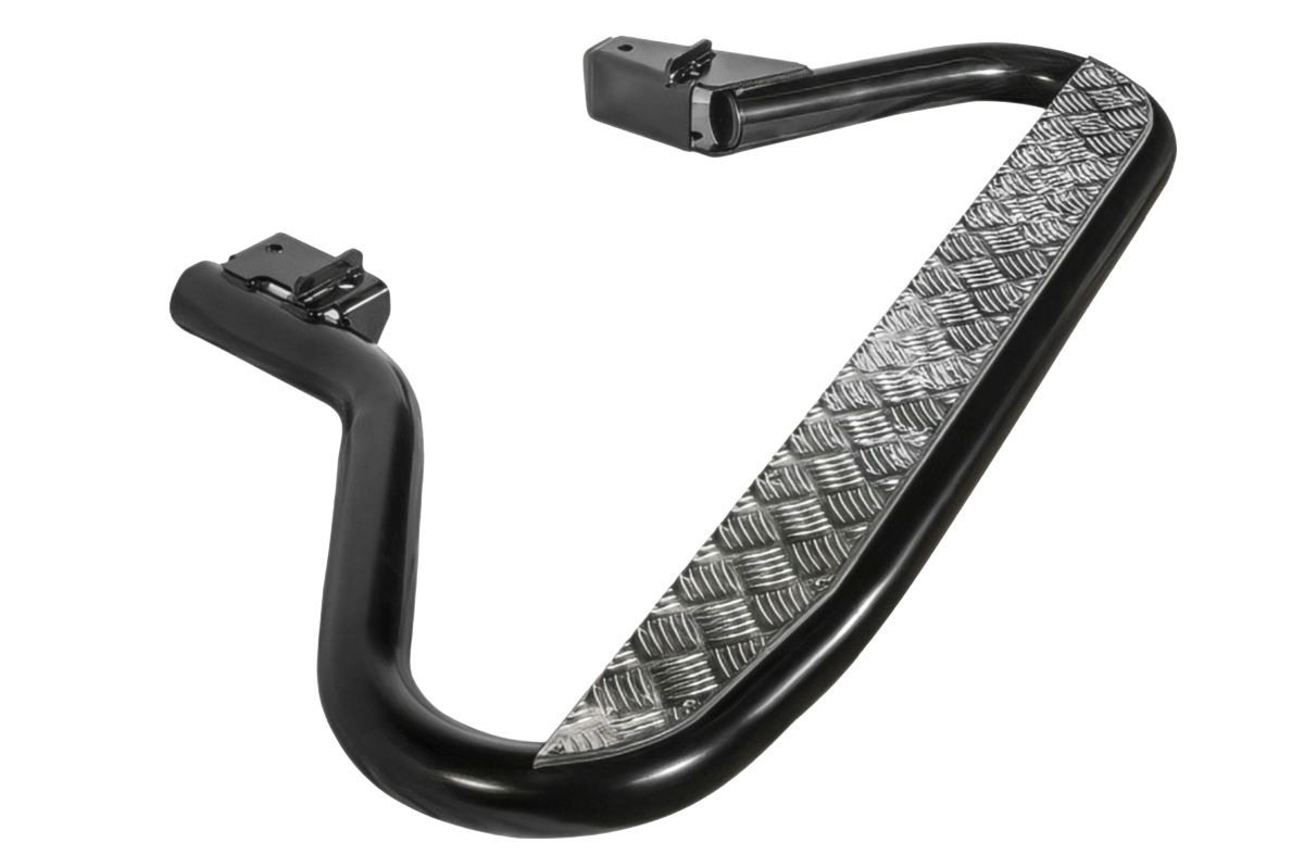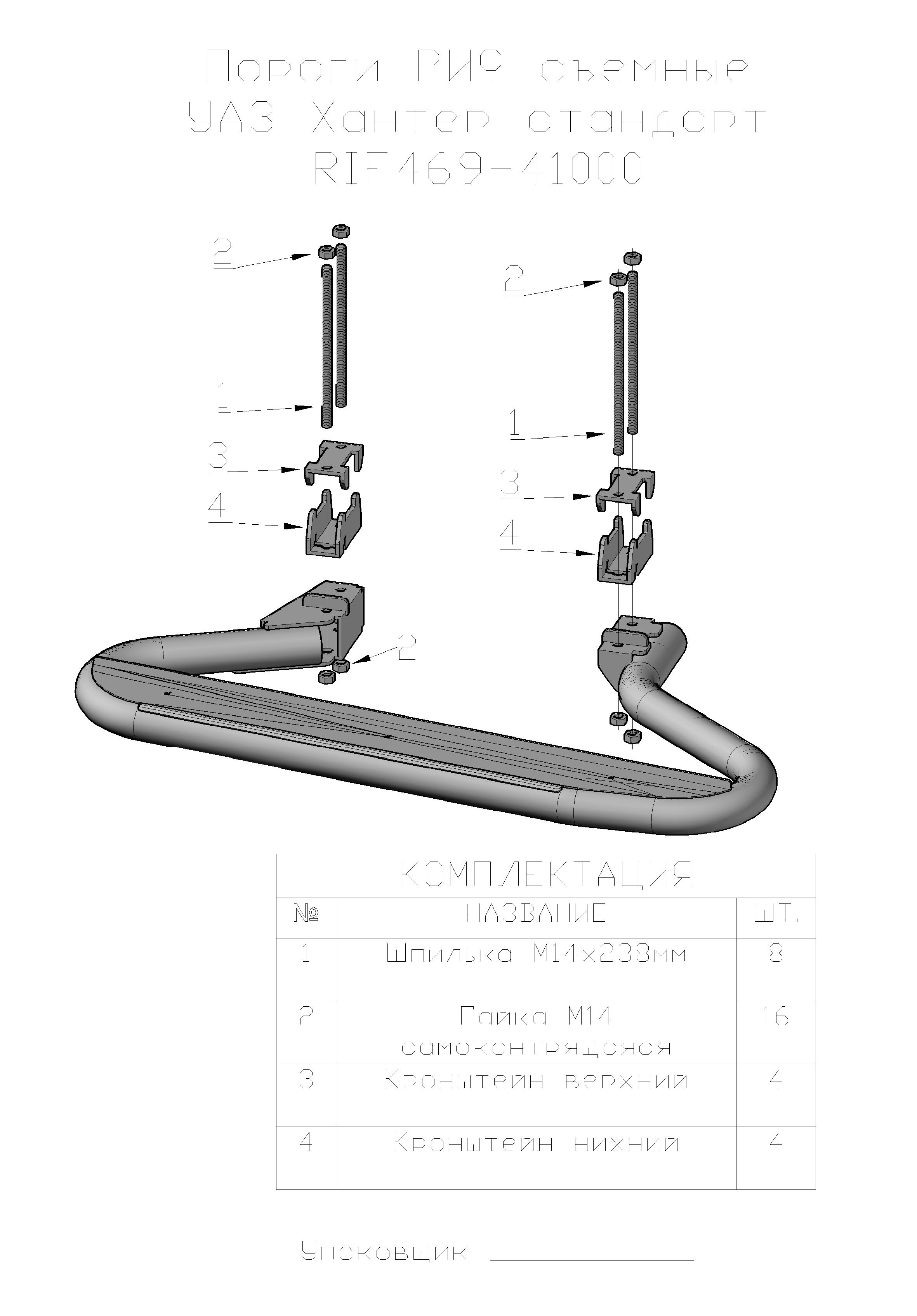 Конструкция порогов РИФ крайне прочна и долговечна, пороги рассчитаны на эксплуатацию в тяжелых условиях – они изготовлены из цельной стальной трубы без применения сварки. Пороги крепятся к раме с помощью стремянок.